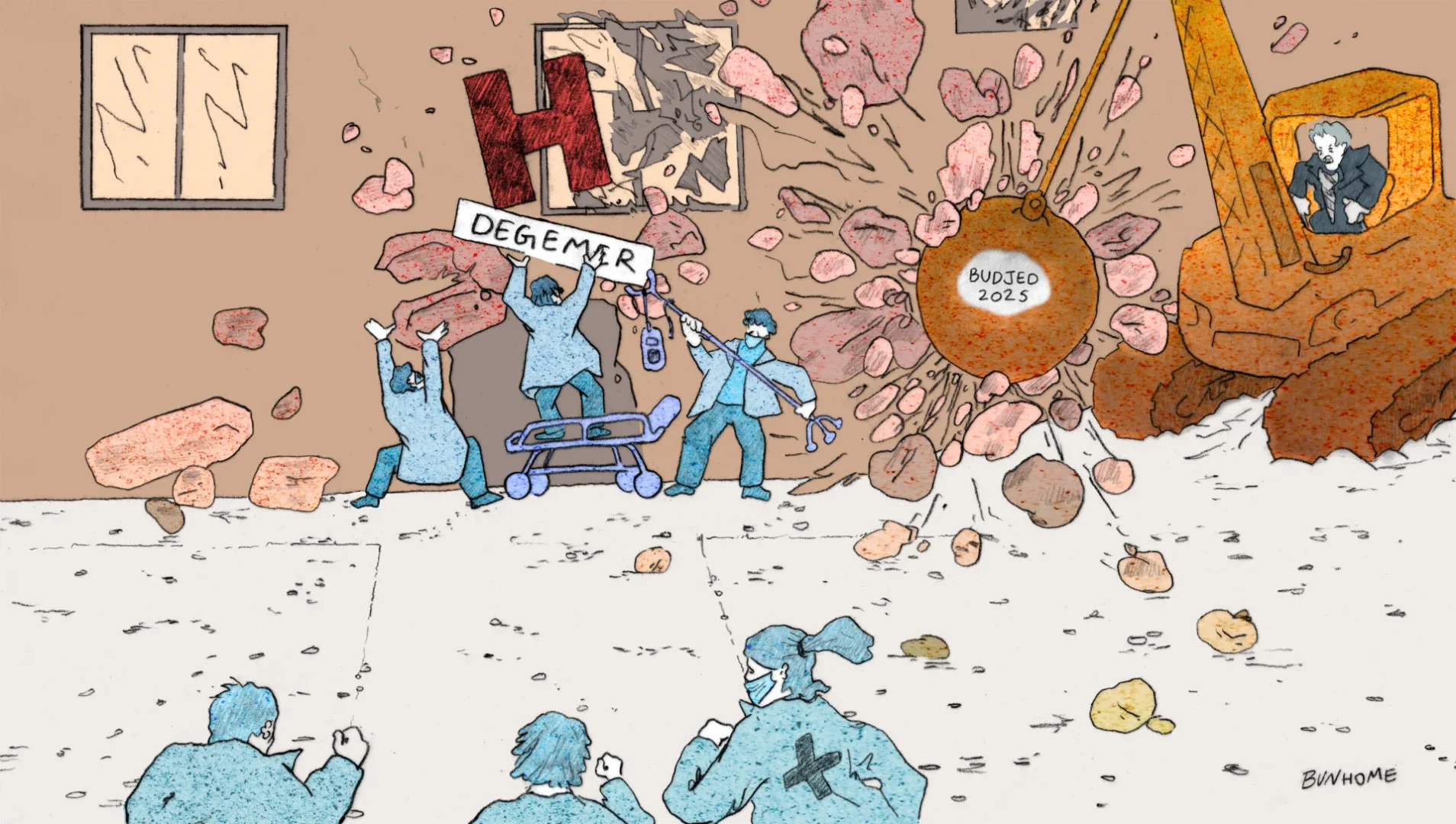 Ouzhpenn 1 000 penn servij a roas o dilez eus o c’hefridioù melestradurel en ospitalioù eus pep korn-bro a zo e Frañs, e 2019. Ar bloavezh war-lerc’h, e-kreiz enkadenn ar C’hovid, edo an dud o sktrakal o daouarn ouzh o frenestr evit trugarekaat labourerien ar prederiañ. N’heller ket dioueriñ an ospital, padal ar bloaz-mañ e ranko an ospitalioù dioueriñ arc’hant c’hoazh : 700 milion a euroioù en deus divizet ar gouarnamant espern er gennad mezegel-ha-sokial a-bezh.
